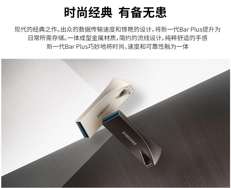 三星優(yōu)盤64GB USB3.1 U盤 BAR升級版+高速汽車載歌曲金屬外殼精致