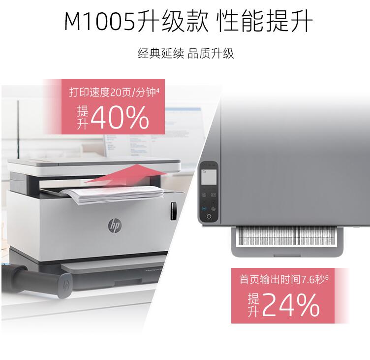 HP/惠普 Laser NS 1005W 創(chuàng)系列 智能閃充大粉倉一體機(jī) 無線激光多功能 無線打印復(fù)印掃描三合一